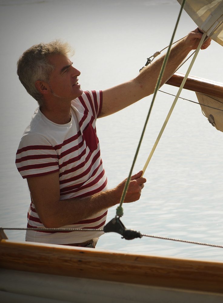 Régatier passionné, il alterne entre navigation hauturière, courses au large et préservation des coques traditionnelles.